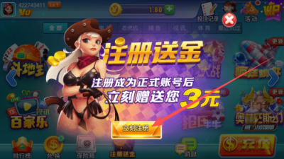 1. 第一步:下載艾牛娛樂APP,進(jìn)入游戲大廳,點擊“注冊送金”按鈕。